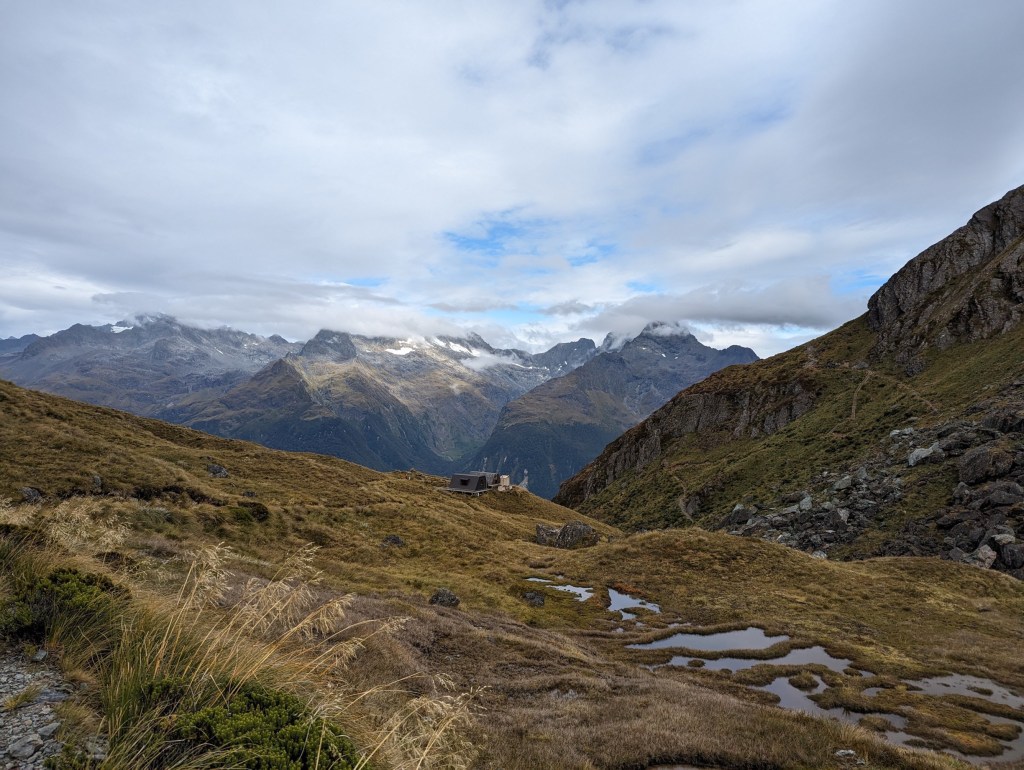 On arrive vers 17:30 à un mini abri de secours qui marque la fin du Routeburn pour nous car nous virons à gauche vers le fond d’une autre vallée plutôt que d’aller vers la route.