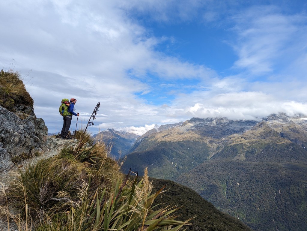 Pendant que nous marchons, une fine pluie se met malheureusement à tomber, tout juste lorsque nous croisons les premiers randonneurs ayant quitté Routeburn Falls Hut, la première hut plus loin.