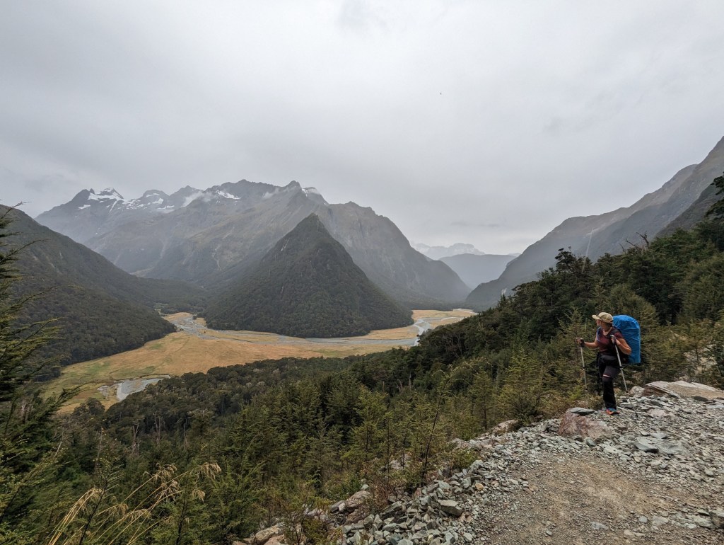 We leave our shelter around 8:00 under an overcast sky which is not looking good for the rest of the day. Very quickly, we leave the parking lot and start the famous Routeburn Track! There are no new tourists yet so we are alone on the trail for the moment.