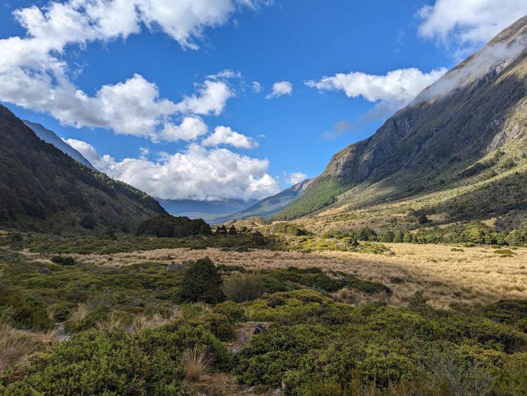 Four hours later, around 1:00 p.m., we arrive at our destination for the day: Greenstone Hut. We could have continued further but after the long day yesterday, the radiant sun that bathes the hut motivats us more to stay and take a nap.