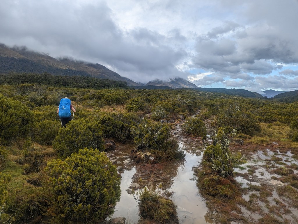 Le chemin continue au fond de cette large vallée plate couverte des habituels buissons couvrant par moment le sentier et le rendant ainsi parfois invisible 👌.