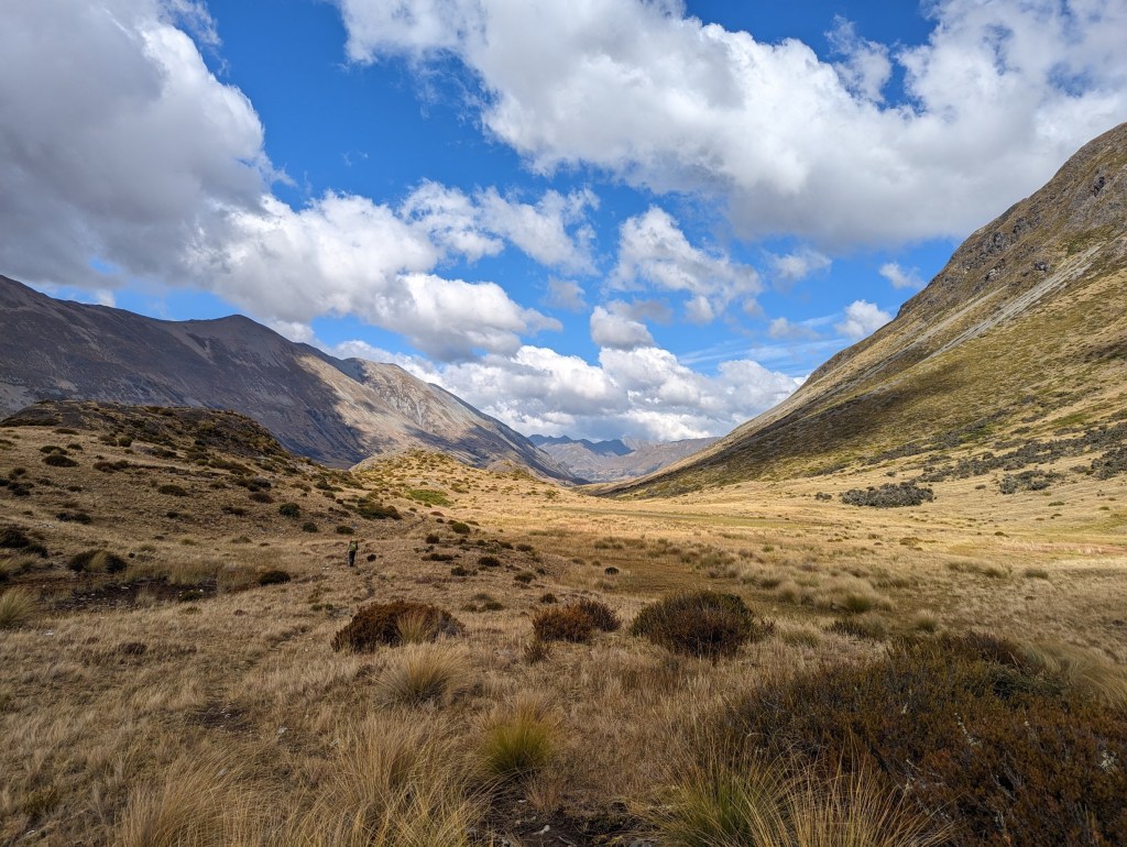 On passe d’abord un col un peu boueux avant de descendre très gentiment dans une magnifique vallée très large et plate.