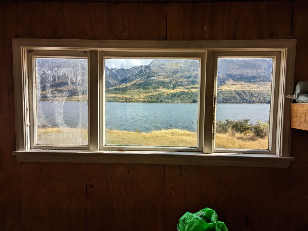 We finally arrive around 3:45 p.m. at our final destination for the day: Careys Hut. It is right on the shore of the lake and we take the opportunity to swim there despite the little fresh wind blowing. The shore is terribly muddy 😅 and barely 2m away the bottom disappears! A little surprising when you don’t expect it haha