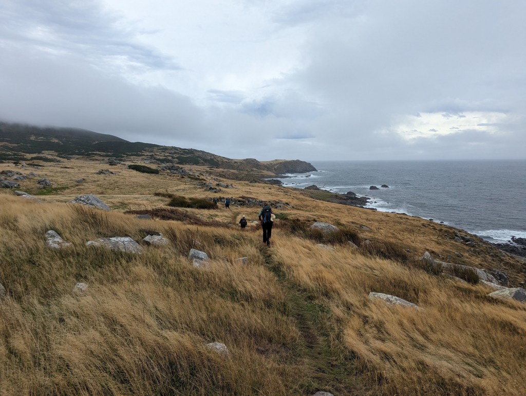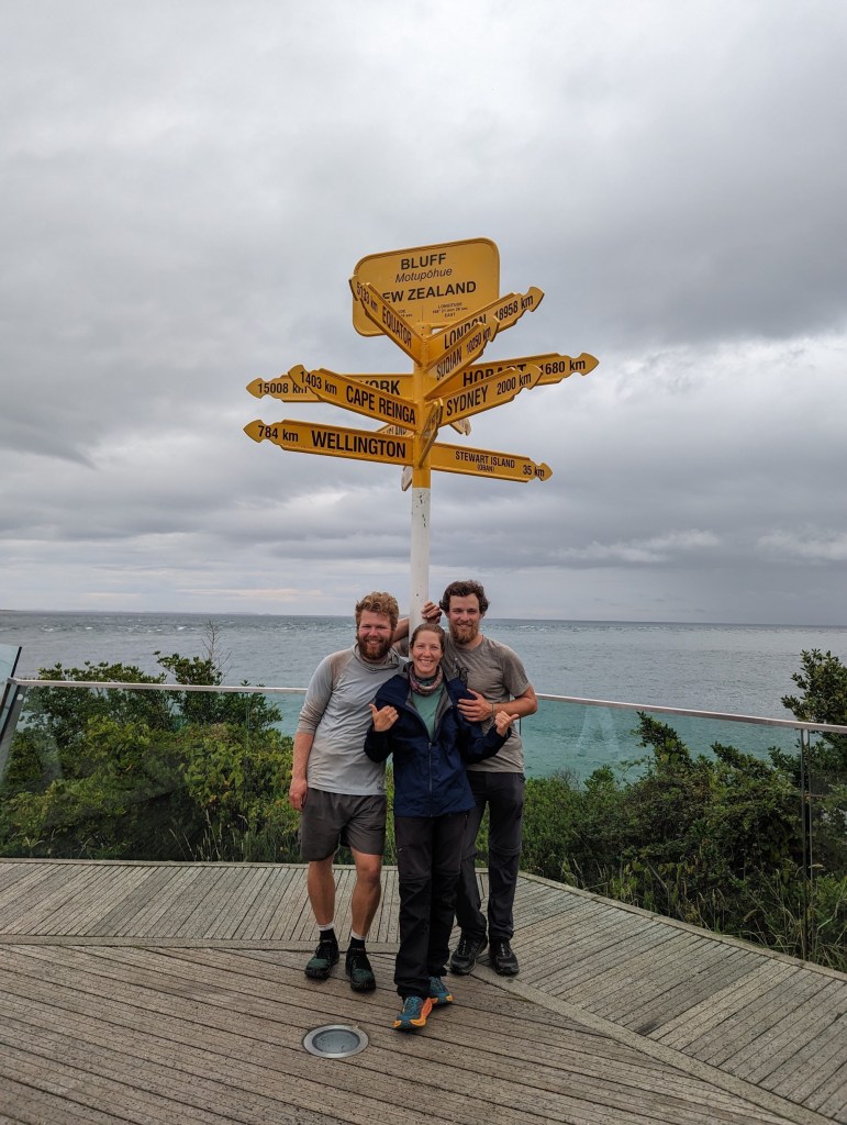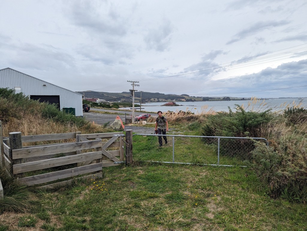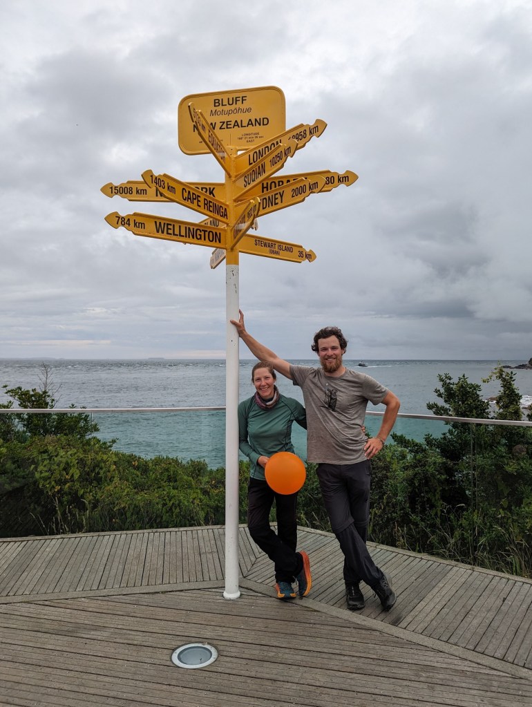 As we walk along our shortcut, a car pulls up and a couple of Kiwis offer to take us straight to Bluff. We refuse with regret, explaining our plan…