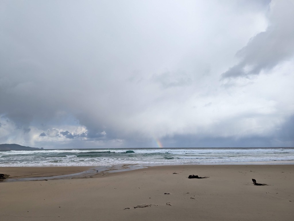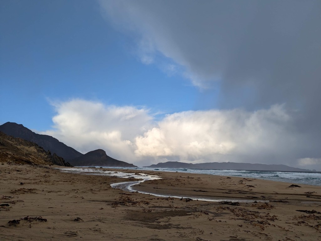 Après un rude montée, on descend tout droit sur une nouvelle petite plage où nous faisons enfin notre pause lunch sous le soleil. Mais c’est sans compter le ciel capricieux qui nous amène quelques gouttes de pluie un peu moins d’une heure plus tard et qui nous incite alors à continuer.