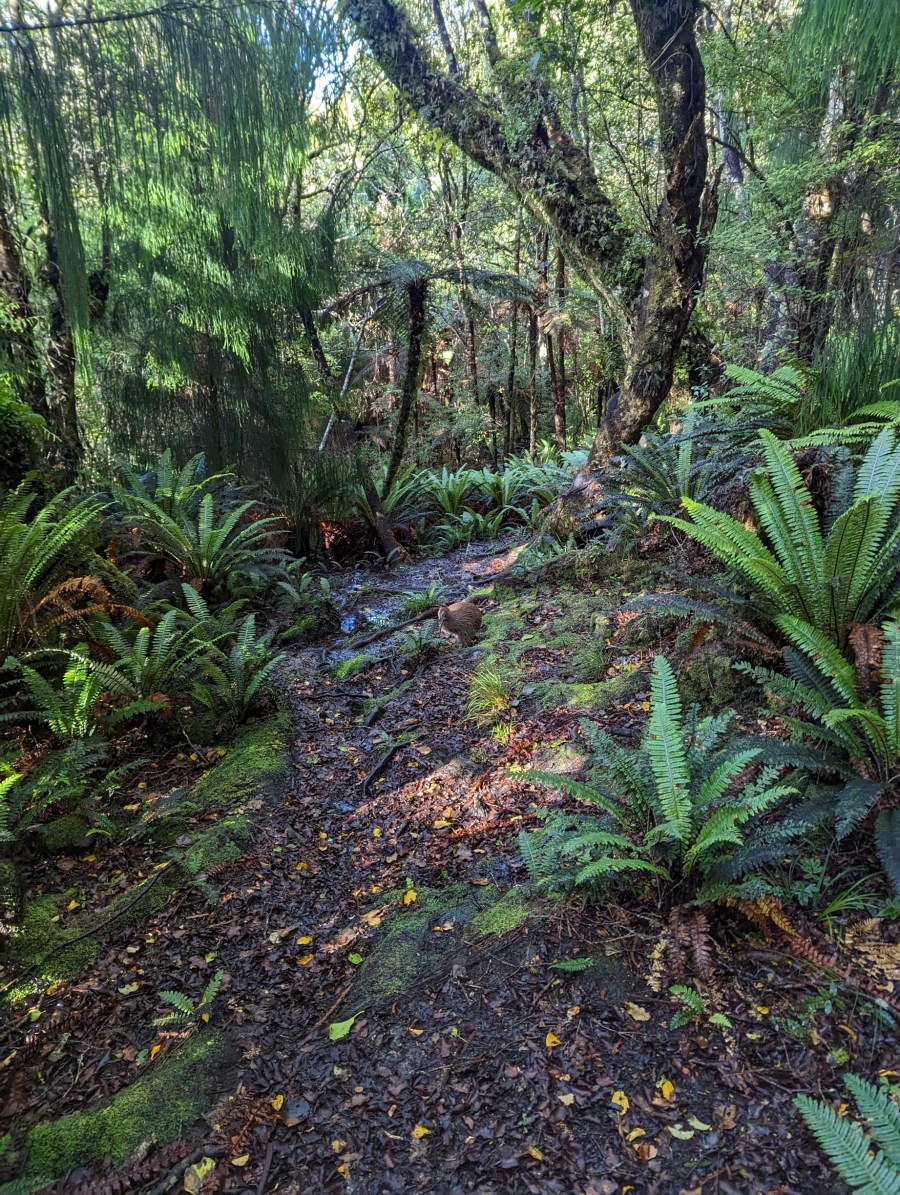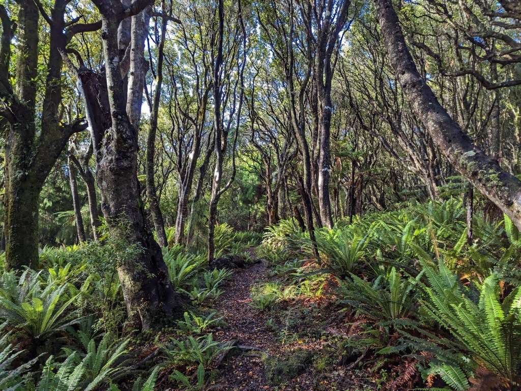 Retour dans la forêt et ça grimpe à nouveau jusqu’à un début d’arrête sur laquelle je manque presque de marcher sur un troisième kiwi ! J’avoue que je n’étais plus trop concentré à en trouver et ils sont diablement bien camouflés dans les arbres. Du coup je sursaute en le voyant filer dans le sous-bois, trop rapide pour en prendre une photo mais pas encore trop loin pour qu’on ne puisse pas l’observer encore une petite minute 😁.