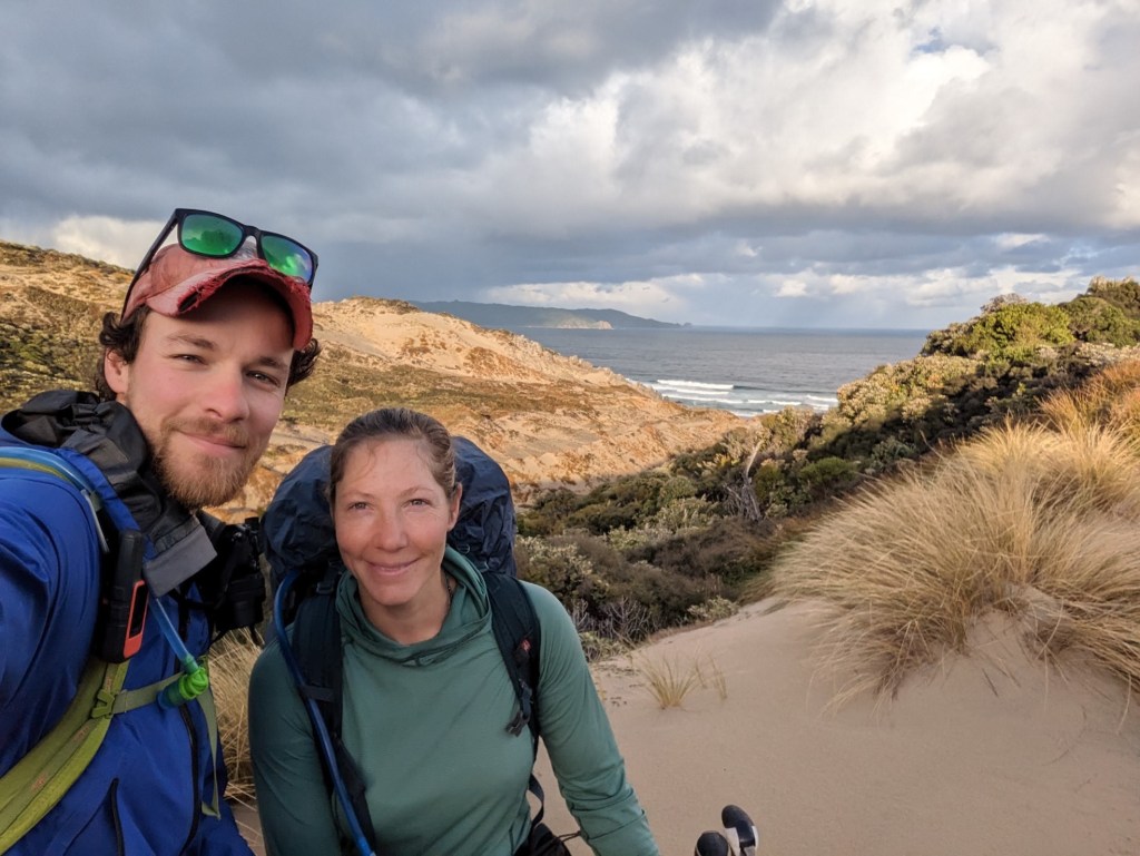 After a brief crossing of the forest, we find ourselves on West Ruggedy Beach. From there, it was recommended to us by other hikers to make a small detour to see a small cave fitted out as a bivouac.