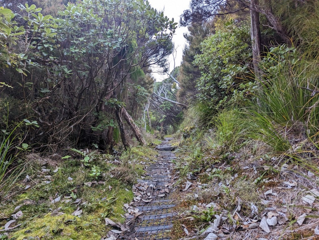 Départ tôt vers 7:40 ce matin car on a aujourd’hui notre plus longue journée de marche sur cette île qui nous attend ! Plus de 23km de forêt encore à parcourir. Mais heureusement, la dernière dizaine se fait sur la Rakiura Great Walk et donc sur un sentier en principe en excellent état.