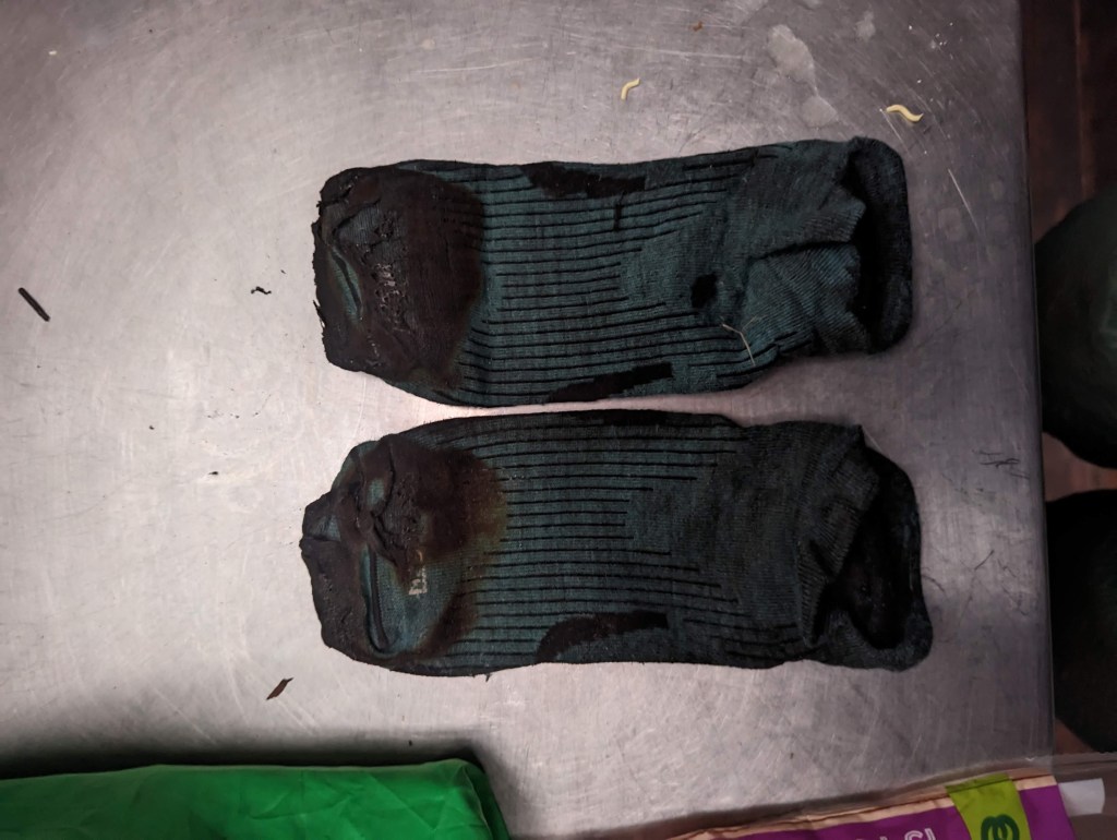And that’s when I fuck up. Thinking I’m being smart, I put my pair of socks directly on the stove before going for a snack while chatting with Gijs. Suddenly, we smell a burning smell. The stove is so hot that my socks have melted on it! Weird because they are supposedly not synthetic. What an idiot, really… Fortunately, I have a spare pair but no mistakes possible 😅