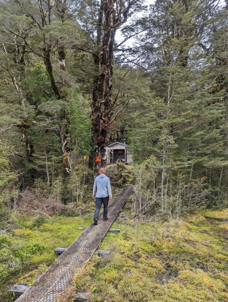 Mais finalement, nous voilà à Upper Spey Hut vers 14:30. Pour y accéder, le DOC a gracieusement installé les plateformes en bois pour nous éviter à devoir patauger dans les marais. C’est un peu tard mais merci quand même 😂