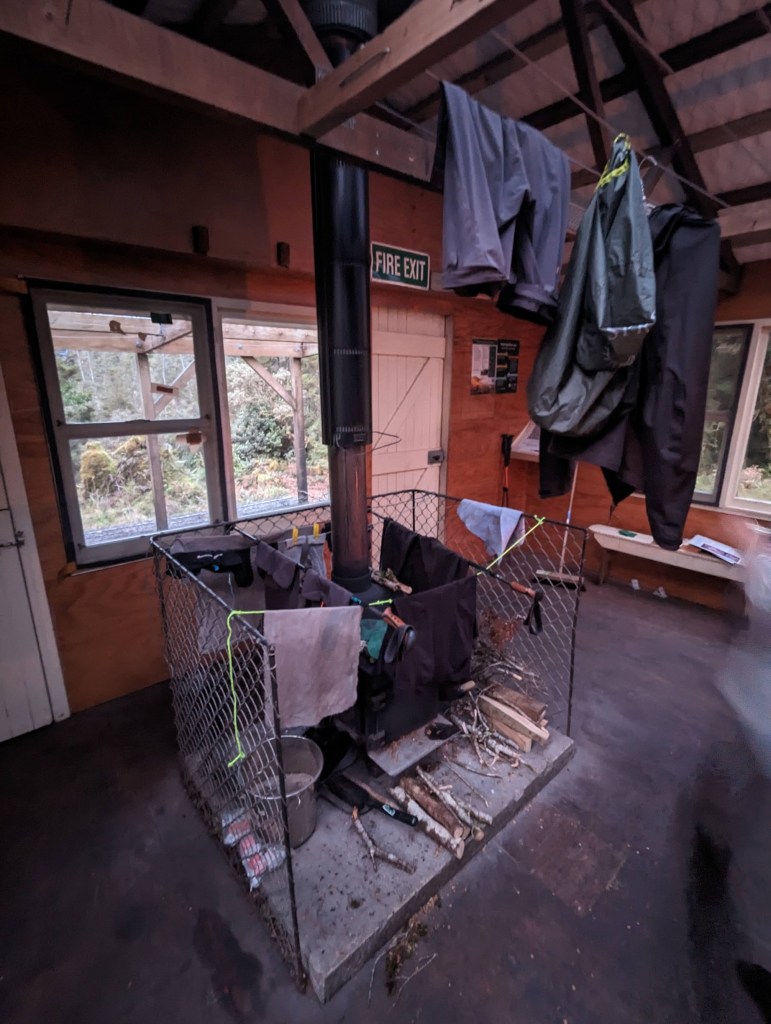 Très vite en arrivant, on constate qu’il ne reste qu’une maigre réserve de bois… Sympa les prédécesseurs. Après une petit heure de pause, on s’occupe à ramasser quelques grosses branches pas très loin et à tout découper pendant qu’on se fait dévorer par les sandflies. Toujours un grand plaisir 🙃