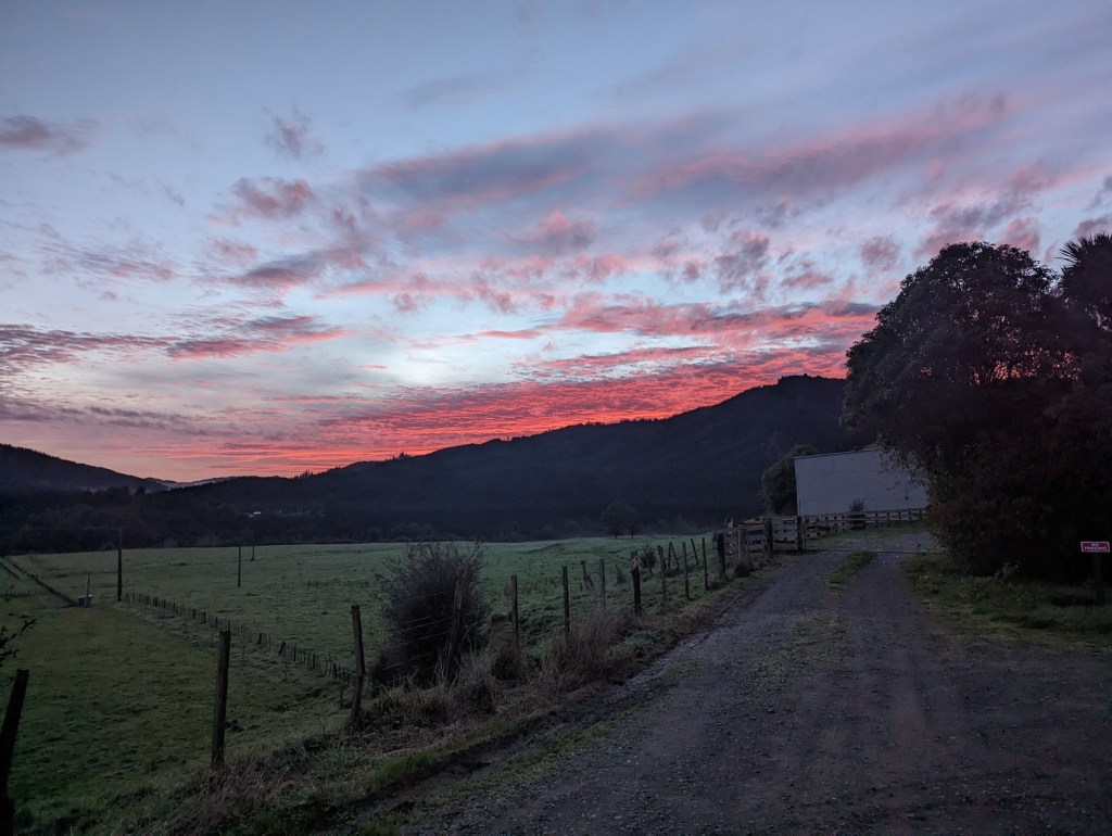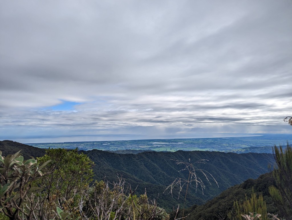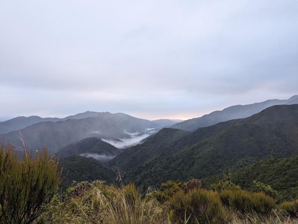 Étant donnée la réputation des Tararuas comme étant particulièrement chronophage et parce que les heures de jour sont assez limitées (le soleil se couche vers 17:00 déjà !), on décide de partir à l’aube – c’est-à-dire 7:00 – depuis le parking au départ du trail.
