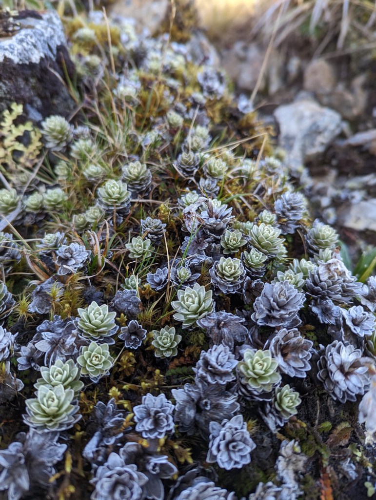 On quitte la hut peu de temps après le lever du soleil ce matin car la route est à nouveau longue et les heures de jour encore peu nombreuses. On dit également adieu à l’équipe de kiwis qui s’en vont sur une arrête parallèle à la notre. Ils étaient très sympas mais on ne les regrettera pas trop car l’un d’eux à fait trembler la hut pendant toute la nuit avec ses ronflements. Un truc de malade. Même ses deux amis l’ont un peu charrié à cause de ça…