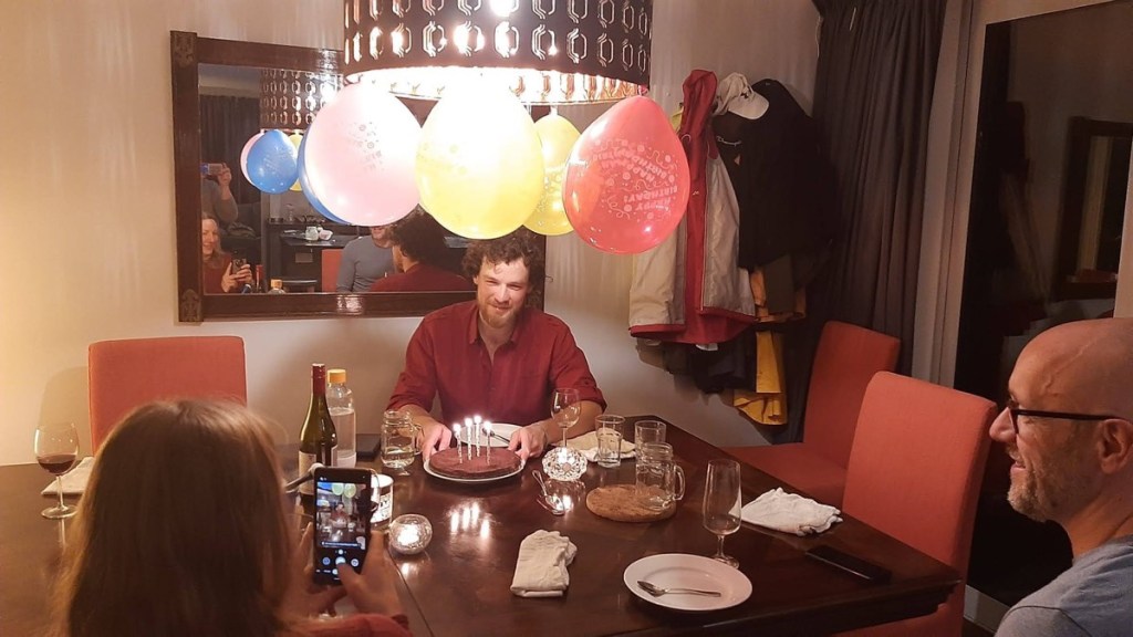 And to end Raph’s birthday in style, we are once again meeting our dear friends Pip and Freddie in Wellington for a delicious dinner that we are cooking. On the menu, rösti with raclette cheese and for dessert, a Swedish specialty, a tasty Kladdkaka. What an amazing and lucky birthday 😄