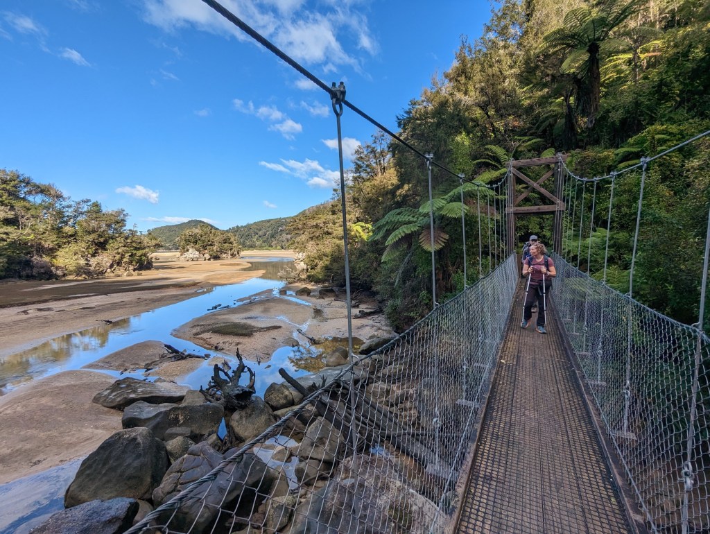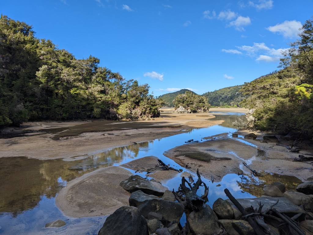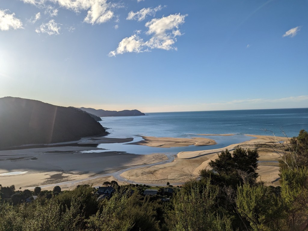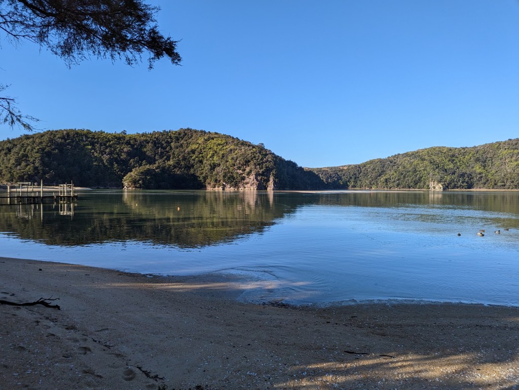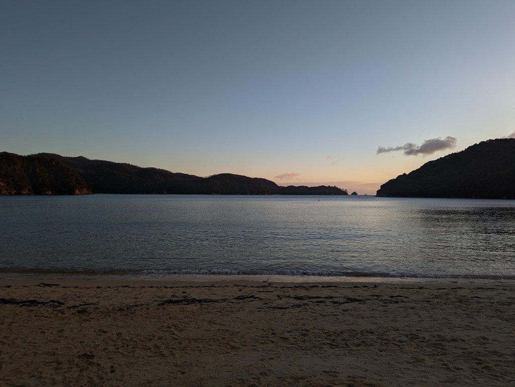 The path then continues to alternate between beaches and forests until our destination of the day, which we reach 3 hours later: Awaroa Hut. It’s a pretty hut, a little older than the one the day before but very comfortable. We meet an English couple living in Christchuch who are about to visit Switzerland. We therefore exchange with great pleasure many recommendations of places to visit over there and in exchange they share some tips in their home country in Yorkshire.