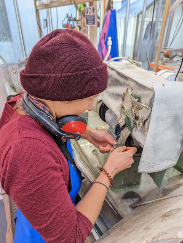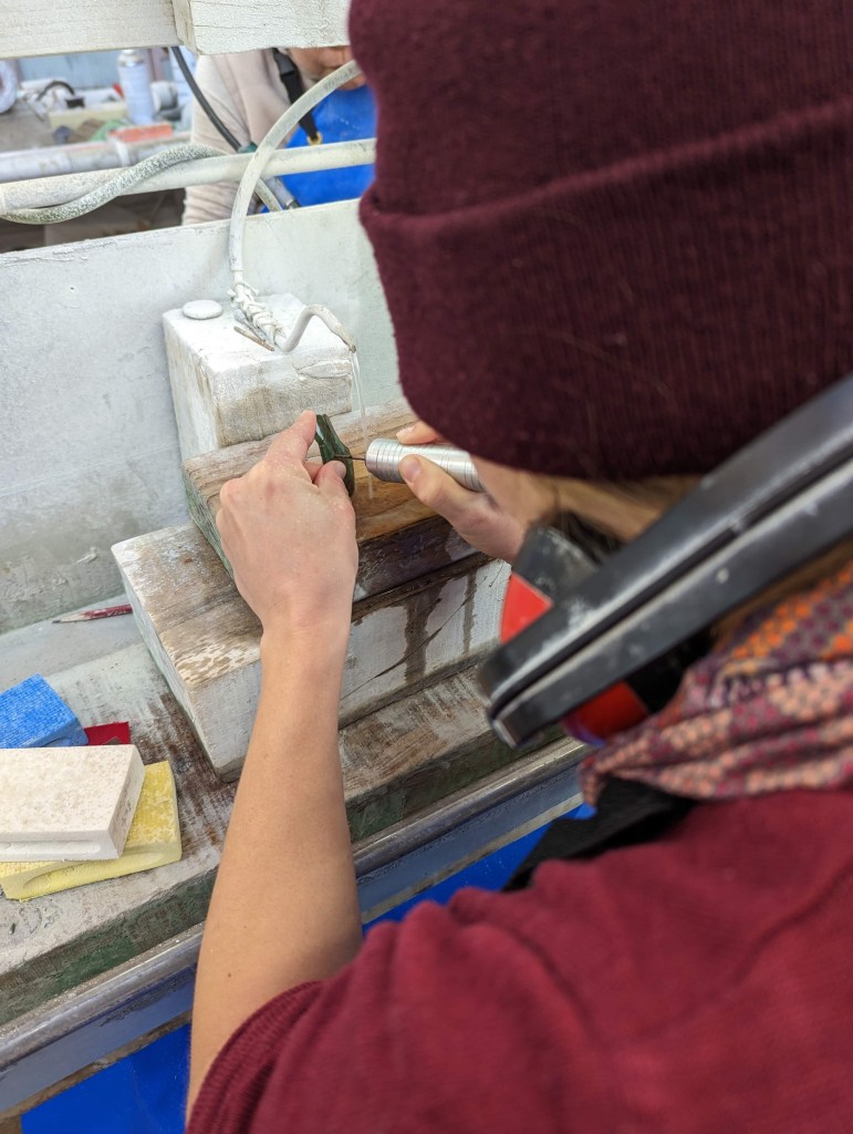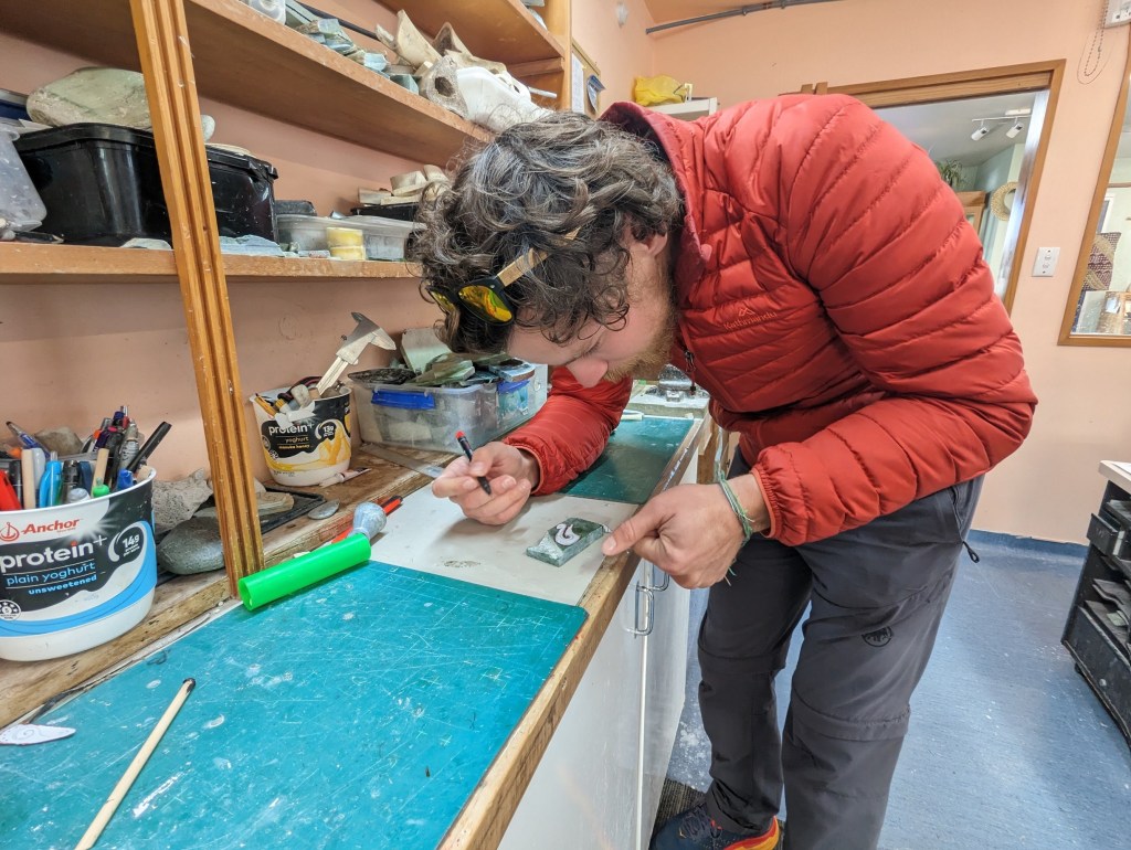 C’est vraiment un exercice passionnant que de tailler cette pierre. Le propriétaire nous guide dans toutes les étapes (et s’occupe des plus délicates comme certaines coupes) et on voit alors nos dessins prendre vie. On est bien content du résultat 😀
