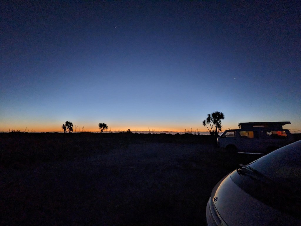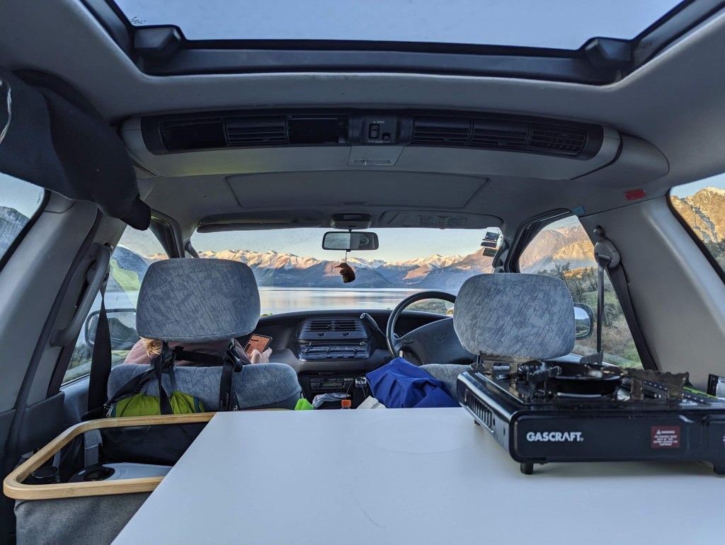 On termine notre périple au bord du Lake Hawea avec un superbe coucher de soleil sur les montagnes environnantes. C’est un arrière plan parfait pour notre souper du jour.