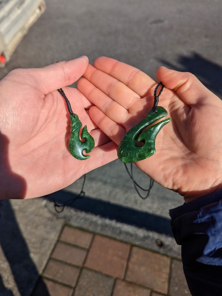 Depuis la fin du TA, nous étions à la recherche d’un souvenir en pounamu (la jade de NZ) à ramener mais sans jamais vraiment trouver de pièces qui nous conviennent. En cherchant alors des choses à faire dans la région, on est tombé sur ce magasin à Hokitika offrant la possibilité de tailler sois-même son pendentif selon son propre design. Voilà un moyen bien original d’avoir une pièce vraiment unique à ramener 😀