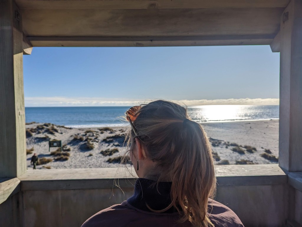C’est notre dernier jour sur la côte ouest et une longue journée nous attend. En effet, nous parcourons aujourd’hui un peu plus de 320km pour retourner sur le côté est des alpes vers Wanaka. On ne s’arrête qu’une dernière fois le long de la côte ouest pour voir une dernière belle plage avant de virer à l’est pour passer le Haast Pass. On sent très vite la température chuter et on voit du givre sur le côté de la route. Sacré changement de décors.