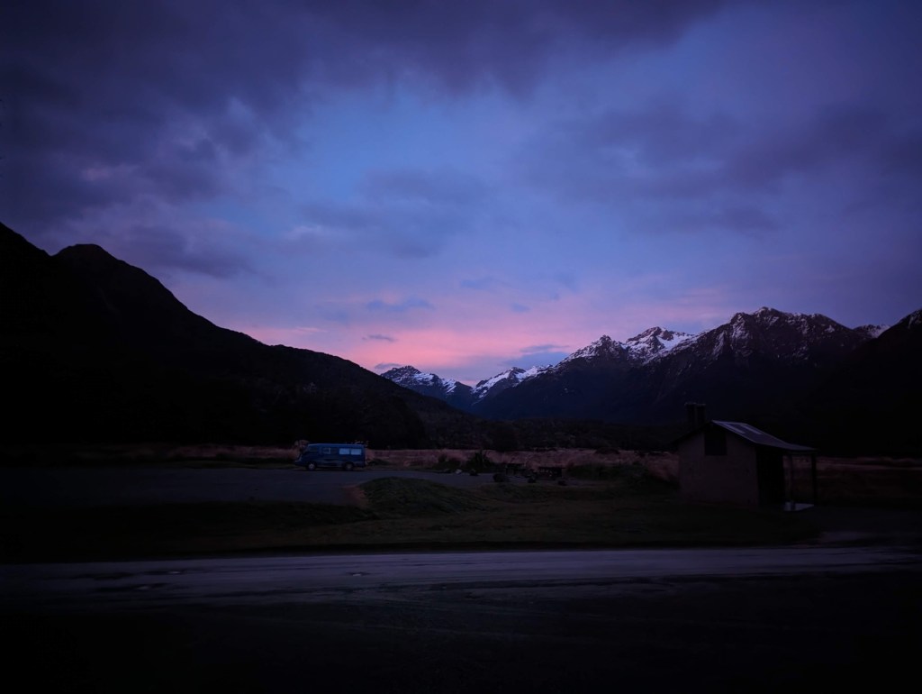Finalement, un gars arrive 3h plus tard et nous annonce après son inspection qu’il va falloir remorquer la voiture à Te Anau… Mais pour ça il doit d’abord y retourner pour chercher la remorque. C’est-à-dire environ 3h aller-retour. Sauf qu’il est maintenant 17:00 et le tunnel d’accès ferme pour la nuit à 18:00 donc on décide de passer la nuit dans le parking et le gars reviendra demain matin…