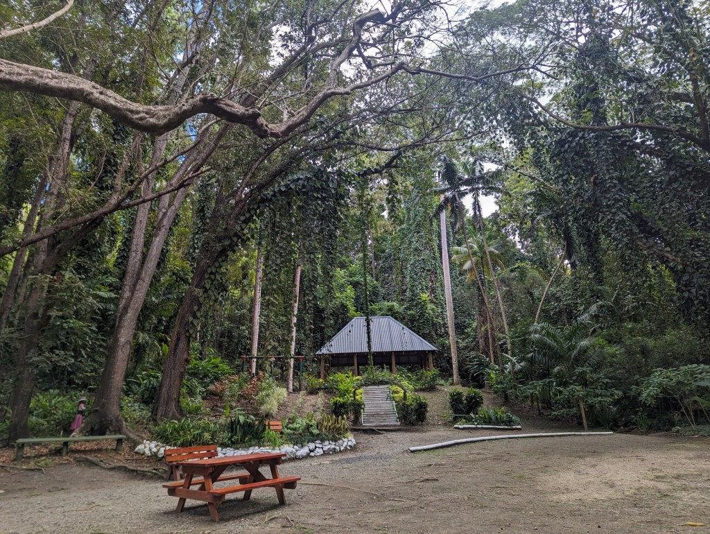 Nous faisons d’abord un premier arrêt par la petite maisonette d’amies à Melrose habitants pas très loin du jardin pour manger un morceau avant de continuer à pied. C’est là que nous découvrons les kasavas sous leur forme frite et c’est un pur régal, surtout accompagnées d’une sauce aigre douce (on a tellement aimé qu’on en refera nous même plus tard sur la bateau).