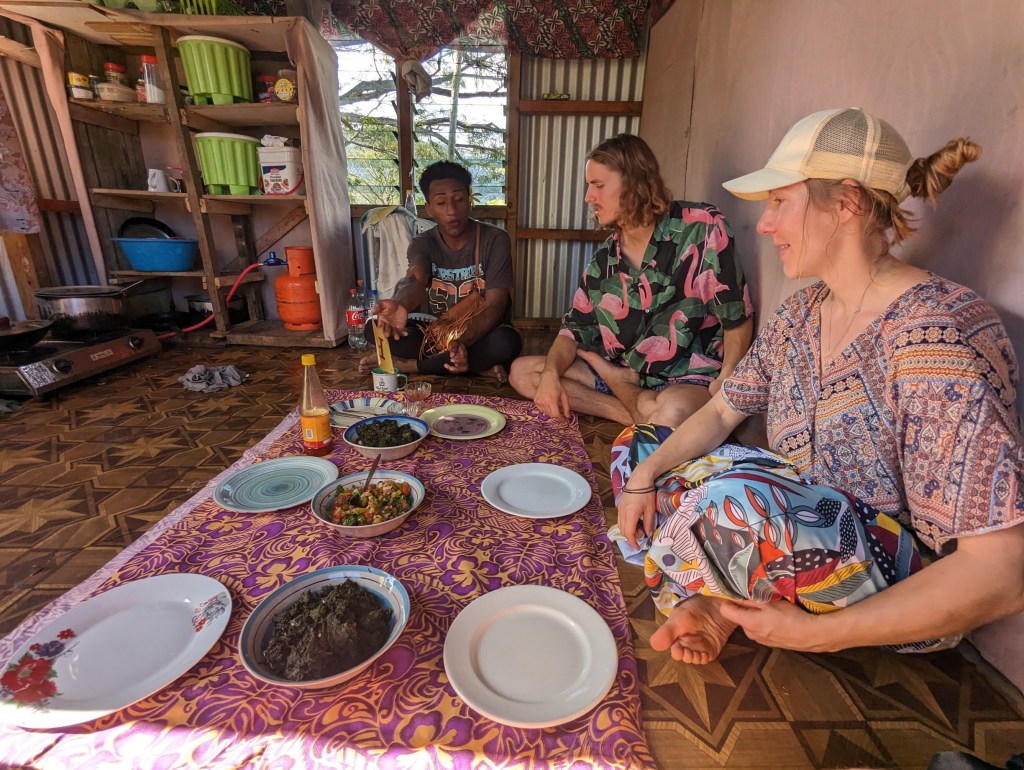 Puis c’est de retour à la maisonette pour partager un lunch tardif cuisiné par nos hôtes. Un des highlights d’ailleurs sont des moules d’eau douce provenant de la rivière derrière la maison et cuite dans du lait de coco. Absolument incroyable !