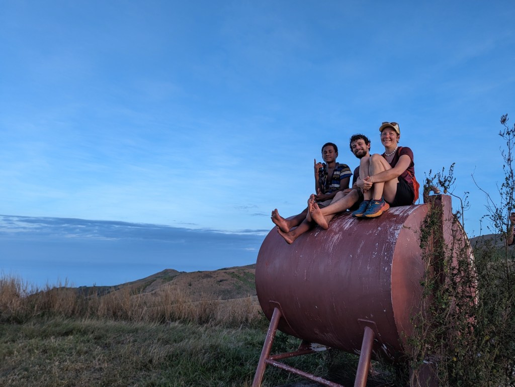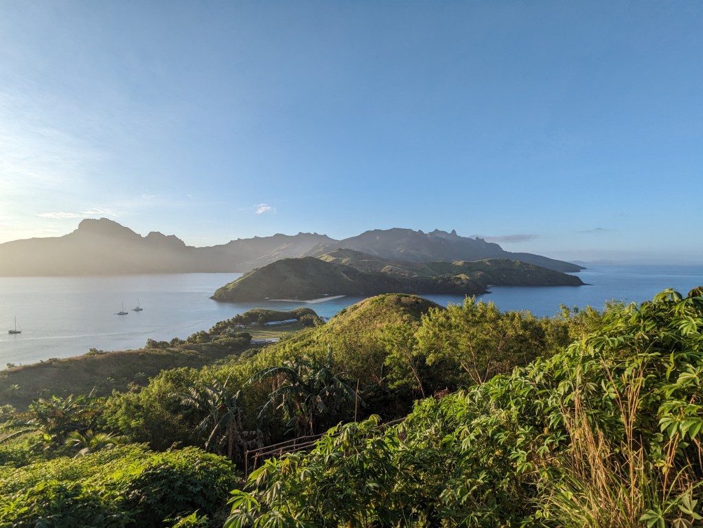Une fois en haut, nous discutons un peu plus avec notre jeune guide et apprenons qu’il a 14 ans et qu’il n’a pas encore eu l’occasion de quitter cette petite île. Il nous explique aussi un peu comment est la vie dans leur village et à l’école que nous voyons en contrebas et où des jeunes jouent au rugby.