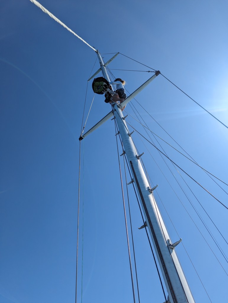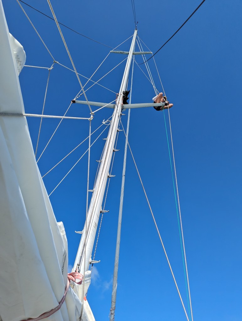 Our second day of navigation goes by without incident until Voli Voli bay where we end up staying for a whole day to remove our damaged radar from the top of the mast, to tighten the autopilot screws, to change the genoa and to rebalance the weight at the front of the boat.
