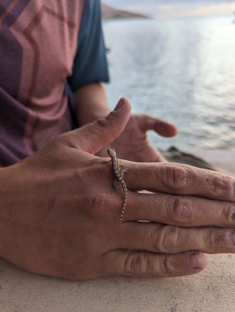 During the day we try again to fish and something bites the hook again but it is so big and strong that it manages to escape. Luckily we didn’t count on that for our meal.