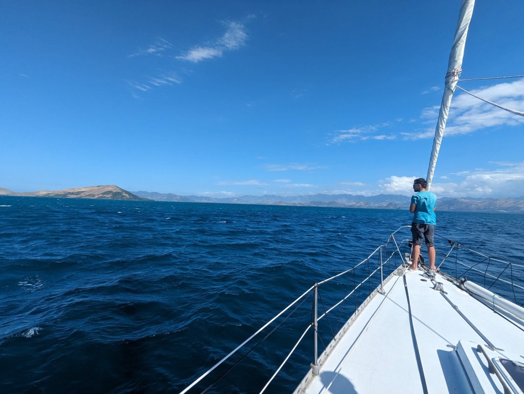 Le lendemain, c’est reparti! Cette fois-ci, il n’y a pas d’escale jusqu’à Savu Savu. Nous avons donc 24h de voile à effectuer. Dès 18h les tours de garde s’enchaînent. Raphaël et moi prenons le premier tour et nous relayons Ernest et Charlotte à 3h du matin. Le vent a forci un peu durant notre sommeil et le bateau adore partir au loff tout seul.