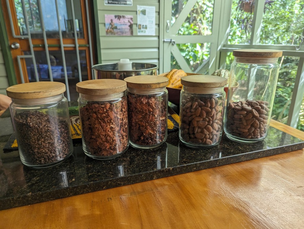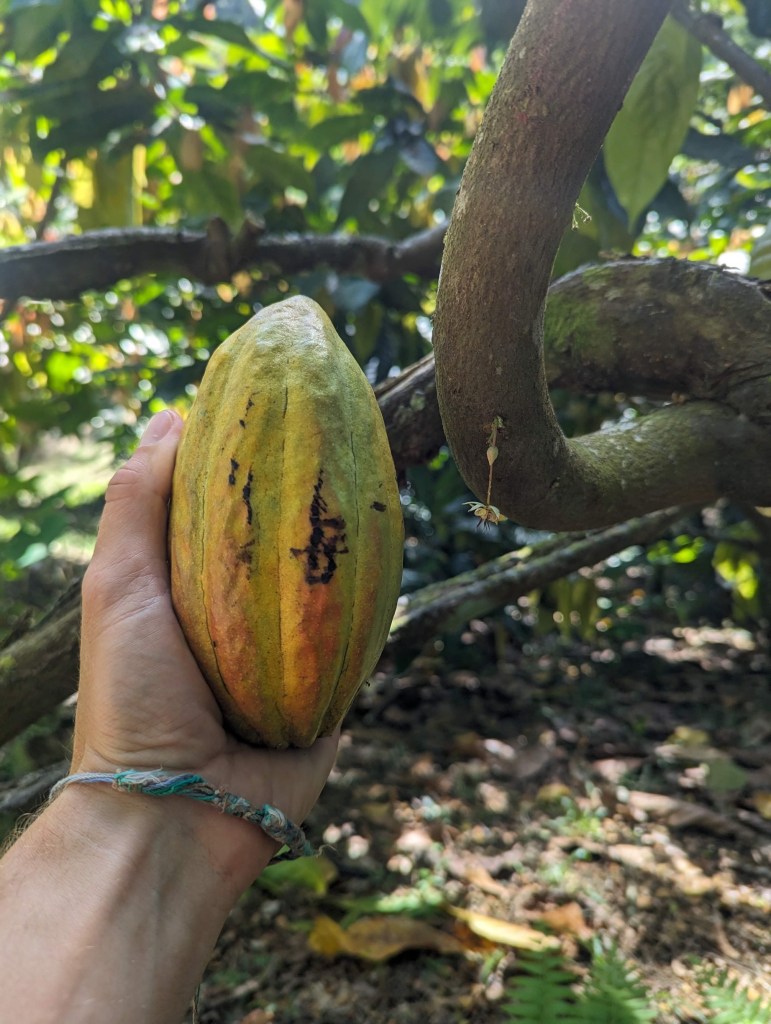 Aujourd’hui, on va visiter la ferme à cacao et chocolaterie Kokomana ! Cette dernière est à 30 minutes à pieds du port mais cela nous fait le plus grand bien de dégourdir à nouveau nos jambes.